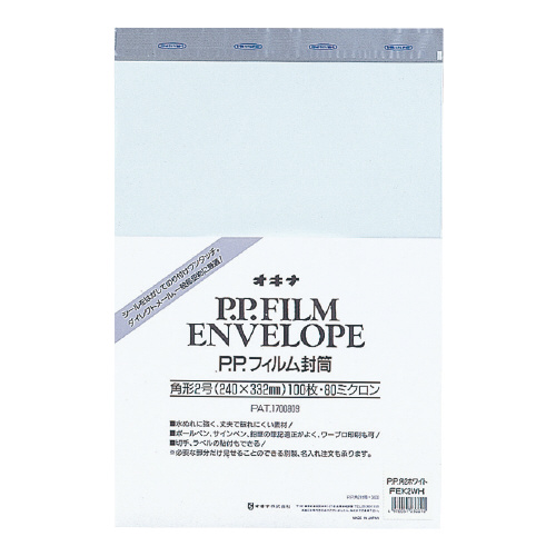 PPフィルム封筒 テープ付き 角2 240x332mm 100枚入 白 FEK2WH
