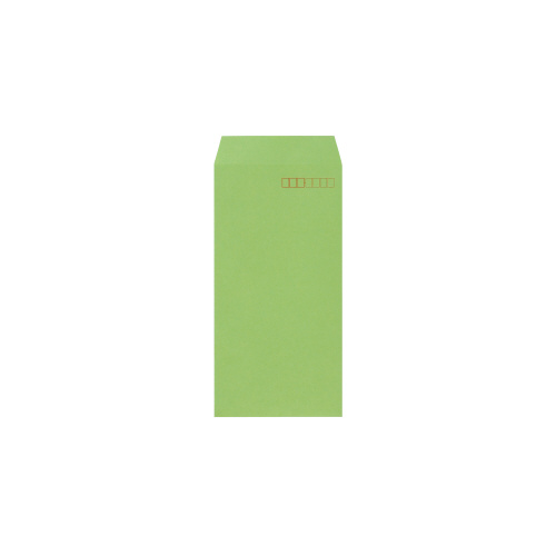 ●鮮やかなカラークラフト封筒 ●中身が透けにくく、個人情報保護にも安心 ●長形3号 ●サイズ/120×235mm ●グリーン ●紙厚85g/平方メートル ●100枚入り ●〒枠付 ●サイド貼り ●古紙配合紙