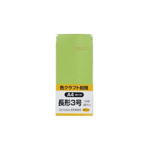 カラークラフト封筒 長3 グリーン 100枚入 〒枠付 N3C85GE