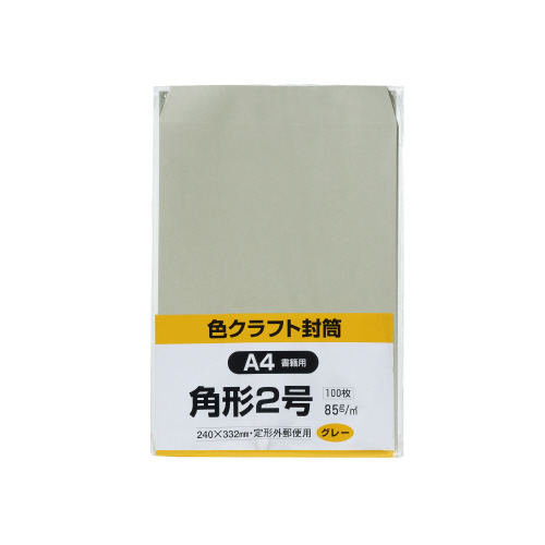 カラークラフト封筒 角2 グレー 100枚入 K2C85G