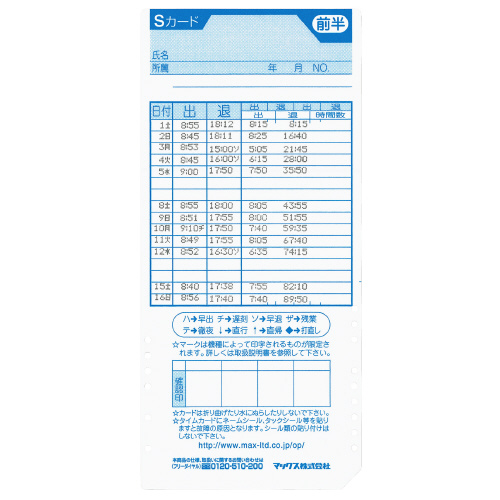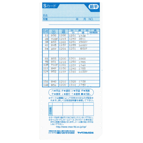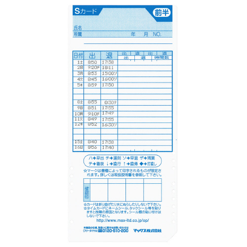 ●タイムカード/ER-Sカード、ER-UDカード