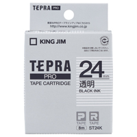 テプラPROテープカートリッジ 透明ラベル 透明に黒文字24mm幅×8m ST24K