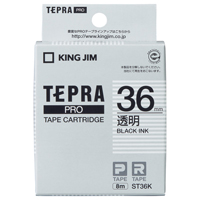 テプラPROテープカートリッジ 透明ラベル 透明に黒文字36mm幅×8m ST36K