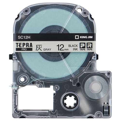 テプラPROテープカートリッジ (パステル) 灰に黒文字12mm幅×8m SC12H
