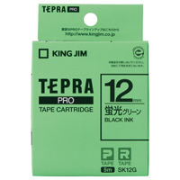テプラPROテープカートリッジ (蛍光色) グリーンに黒文字 12mm幅 SK12G