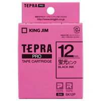 テプラPROテープカートリッジ (蛍光色) ピンクに黒文字 12mm幅 SK12P