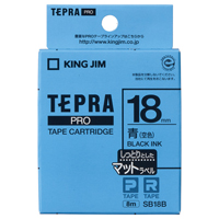 テプラPROテープカートリッジ マットラベル 青に黒文字18mm幅×8m SB18B