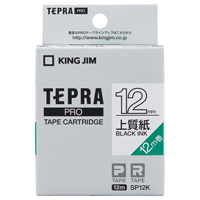 テプラPROテープカートリッジ 上質紙ラベル 白に黒文字 12mm幅 SP12K