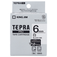 テプラPROテープカートリッジ マットラベル 白に黒文字 6mm幅×8m SB6S