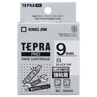 テプラPROテープカートリッジ 強粘着ラベル 白に黒文字 9mm幅×8m SS9KW