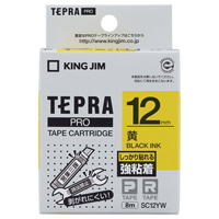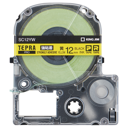 テプラPROテープカートリッジ 強粘着ラベル 黄に黒文字12mm幅×8m SC12YW
