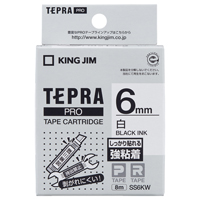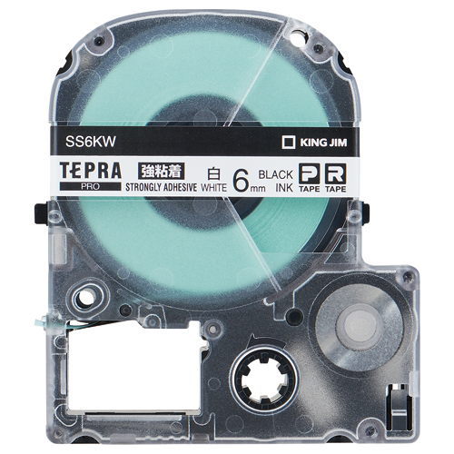 テプラPROテープカートリッジ 強粘着ラベル 白に黒文字 6mm幅×8m SS6KW
