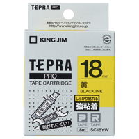 テプラPROテープカートリッジ 強粘着ラベル 黄に黒文字18mm幅×8m SC18YW