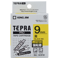 テプラPROテープカートリッジ 強粘着ラベル 黄に黒文字 9mm幅×8m SC9YW