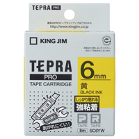 テプラPROテープカートリッジ 強粘着ラベル 黄に黒文字 6mm幅×8m SC6YW