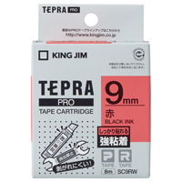 テプラPROテープカートリッジ 強粘着ラベル 赤に黒文字 9mm幅×8m SC9RW