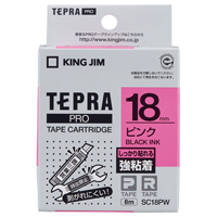 テプラPROテープカートリッジ 強粘着ラベル ピンクに黒文字 18mm幅 SC18PW