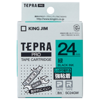 テプラPROテープカートリッジ 強粘着ラベル 緑に黒文字24mm幅 SC24GW