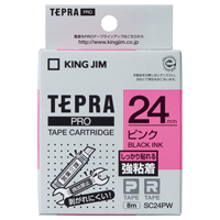 テプラPROテープカートリッジ 強粘着ラベル ピンクに黒文字 24mm幅 SC24PW