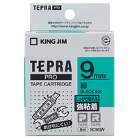 テプラPROテープカートリッジ 強粘着ラベル 緑に黒文字 9mm幅×8m SC9GW