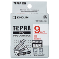 テプラPROテープカートリッジ 強粘着ラベル 白に赤文字 9mm幅×8m SS9RW