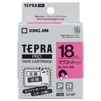 テプラPROテープカートリッジ マグネットテープピンクに黒文字18mm幅 SJ18P