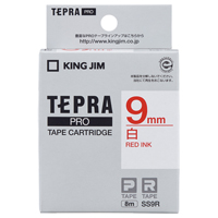 テプラPROテープカートリッジ 白ラベル 白に赤文字 9mm幅×8m SS9R