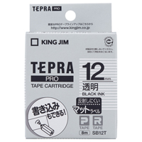 テプラPROテープカートリッジ マットラベル透明に黒文字12mm幅×8m SB12T