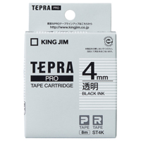 テプラPROテープカートリッジ 透明ラベル 透明に黒文字 4mm幅×8m ST4K