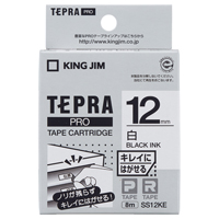 テプラPROテープカートリッジ キレイにはがせる 白に黒文字 12mm幅 SS12KE