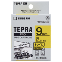 テプラPROテープカートリッジ キレイにはがせる 黄に黒文字 9mm幅 SC9YE