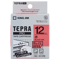 テプラPROテープカートリッジ キレイにはがせる 赤に黒文字 12mm幅 SC12RE
