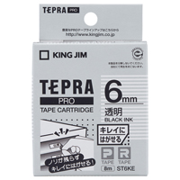 テプラPROテープカートリッジ キレイにはがせる 透明に黒文字 6mm幅 ST6KE