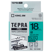 テプラPROテープカートリッジ キレイにはがせる 緑に黒文字 18mm幅 SC18GE
