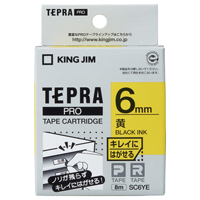 テプラPROテープカートリッジ キレイにはがせる 黄に黒文字 6mm幅 SC6YE