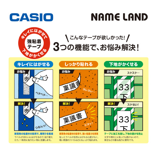 ネームランド テープカートリッジ キレイにはがせて下地が隠せる強粘着テープ XR-9GCWE