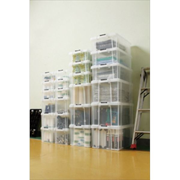 商品の説明サイズ:22L?|?色:クリア金属のバックル仕様のフタ付きコンテナです。 バックルの成形部分に凸面が付いているため指に引っかかりやすく、バックルをフタから取り外しやすくなっています。 重い荷物を入れて持ち運ぶ際にも手が痛くならないよう、持ち手部分に厚みをもたせました。 金属バックルの端を樹脂でカバーしていますので、作業中の軍手や衣類の引っかかりを防止します。 「BOXコンテナシリーズ」との積み重ねが可能です。