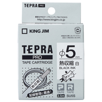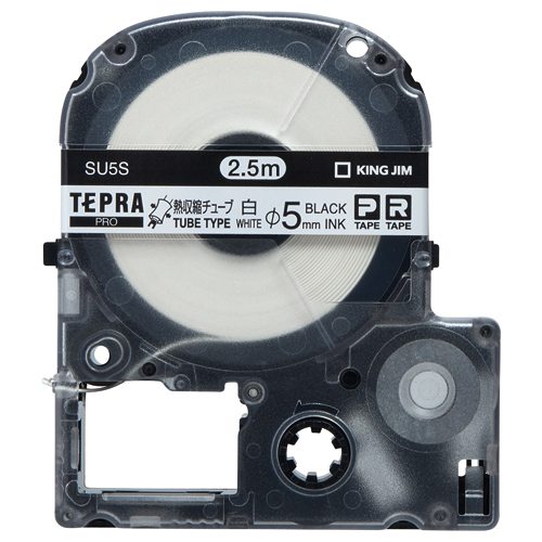テプラPROテープカートリッジ 熱収縮チューブ 白に黒文字 Φ5mm SU5S