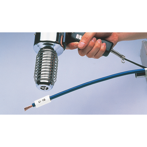 ●チューブの表面に工業用ドライヤーで熱風をあてるとケーブルのサイズに収縮してピッタリフィットします。