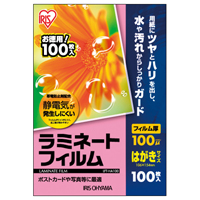 ●用途/はがきサイズ ●サイズ/106×154mm ●厚さ/100μm ※アイリスオーヤマ製のラミネーターにご使用ください。