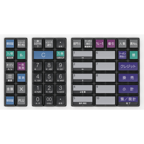 ●サーマル紙対応 ●質量/約7.8kg ●ドロアー分類数/紙幣:4、硬貨:6 ●ロール紙寸法/幅58×外径(最大)80mm(58R-80TR-ZC、58R-80TRHC適合) ●保証期間/1年 ●サイズ/W347×D425×H236mm(ポップアップ時H284mm) ●色/ピュアホワイト ●10部門 ●シート数/2 ●ヨコ型領収書発行
