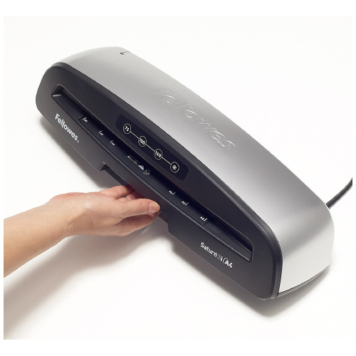 ●2本ローラー ●サイズ/W535×D150(トレイ使用時D232)×H105mm ●質量/2.5kg ●ラミネート速度/300mm/分 ●加工時間(A4/1枚 50Hz)/約60秒 ●最大ラミネート厚/0.5mm ●最大ラミネート幅/320mm(A3) ●温度調節/3段階+コールド ●消費電力/750W ●ラミネートフィードセンサー ●リリースレバー ●オートパワーオフ・PTS(パウチトラッキングシステム) ●サポートアーム付 ●ウォームアップ/約60秒 ●対応フィルム厚/厚75-150ミクロン ●保証期間/1年
