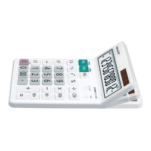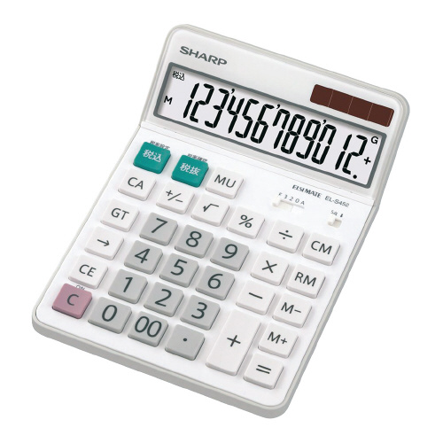 ●好きな表示角度に変えられるチルト付き電卓 ●仕様/12桁 ●プラスチックキー ●税計算 ●サイズ/W128×D185×H13mm ●質量/約200g ●グランドトータルメモリー(GT) ●演算状態表示 ●マークアップキー ●早打ち対応 ●表示部保護(アクリルパネル) ●すべり止めゴム足付き ●電源/太陽電池+CR2032×1 ●太陽電池による電力供給 ●保証期間/1年