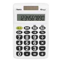 ●10桁 ●使用電源:太陽電池+アルカリボタン電池(LR1130)1個 ●保証期間:1年間 ●付属品:取扱説明書、保証書 ●本体寸法:W70×D112×H19mm ●本体質量:約45g ●税計算 ●桁下げ(→)キー ●早打ち対応 ●%キー ●±キー ●オートパワーオフ機能 ●表示部傾斜 ●ゴムキー ●すべり止め付き