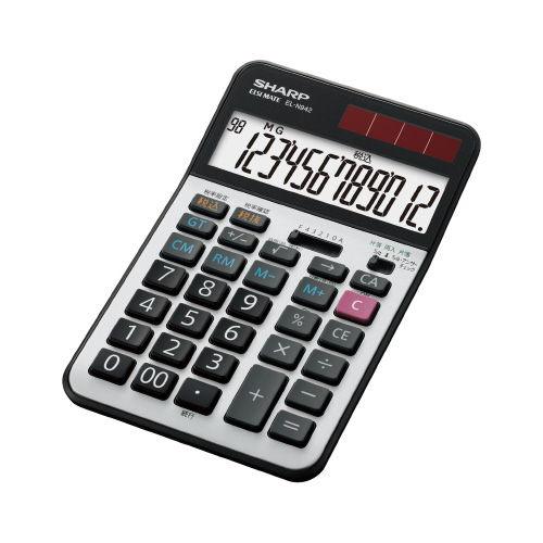 ●入力スピードを極めた、経理、財務担当者の方には便利な実務電卓 ●12桁 ●税計算 ●大型表示 ●日数計算 ●時間計算 ●カウンター付き演算状態表示 ●2色成型キー ●サイレントタッチキー ●強化すべり止めゴム ●サイズ/W112×D181×H35mm ●質量/約202g ●傾斜タイプディスプレイ ●早打ち対応 ●アンサーチェック機能 ●グランドトータルメモリー(GT)機能 ●使用電源/太陽電池+CR2032×1 ●太陽電池による電力供給 ●再生プラスチック60%以上使用 ●保証期間/5年