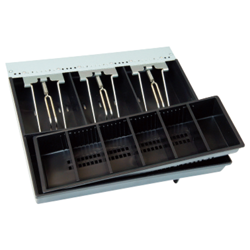●フロントパネルを押すとオープンする手動式のキャッシュドロア。タブレットレジにも最適なコンパクトサイズ!強度の高いスチール製 ●ドロア分離数/紙幣3、硬貨6 ●上面荷重/30kg(上面への均等荷重の場合) ●サイズ/幅330×奥行340×高さ101mm(ゴム足含む) ●質量/約6kg ●付属品/鍵2個、前傾防止固定用金具 ●色/ホワイト ●保証期間/3年 ※奥行の小さいコンパクト設計のため、札入れの前面部分がアール仕様となっています。