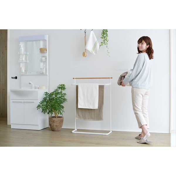 商品の説明パターン(種類):タオルハンガーお部屋に馴染む、シンプルなデザインのタオルハンガーです。マットな質感のスチールパイプと温かみのある天然木の組み合わせで、お部屋に置いても圧迫感がありません。天然木が、柔らかな掛心地と温かな雰囲気。幅広なのでバスマットから大判のバスタオルまで幅広く使えます。★お客様組立★●商品サイズ(cm)幅約72.5×奥行約26.5×高さ約96.5●耐荷重タオルハンガー1本あたり1kg(計4kg)●主要材質スチール粉体塗装、天然木(ウレタン塗装)、ABS樹脂