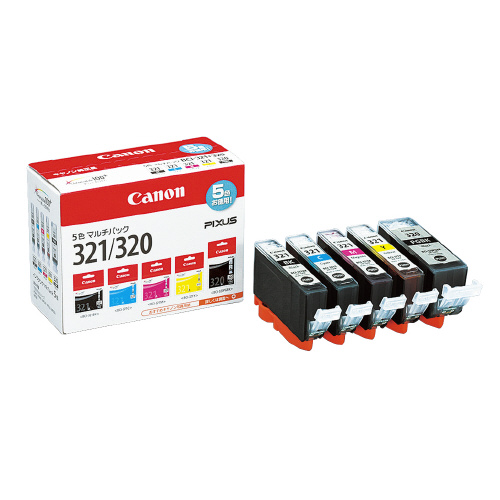 ●ブラック(品番:BCI-320PGBK)・ブラック(品番:BCI-321BK)・シアン(品番:BCI-321C)・マゼンタ(品番:BCI-321M)・イエロー(品番:BCI-321Y)の5色パック