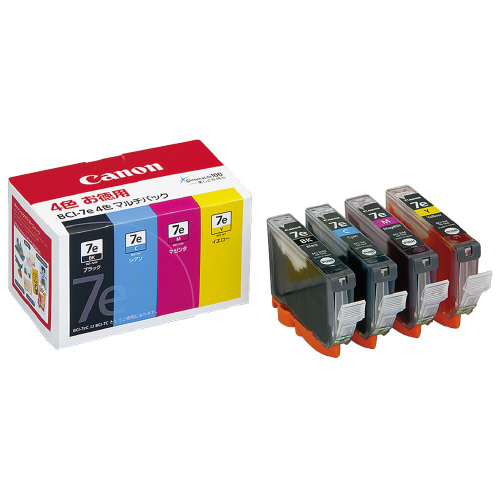 ●ブラック(品番:BCI-7eBK)・イエロー(品番:BCI-7eY)・マゼンタ(品番:BCI-7eM)・シアン(品番:BCI-7eC)の4色パック