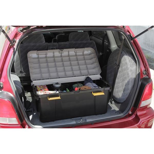 商品の説明サイズ:幅85㎝?|?色:ブラックカー&レジャー用品がスッキリ収納できます。フタは雨水が入らない設計になっています。
